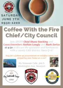 Join SPOFR Chief Shane Stocking and Council Members Nathan Longly and Mark Zorica at 9:30 to discuss the questions and hesitancies with the county EMS district. Open Q+A