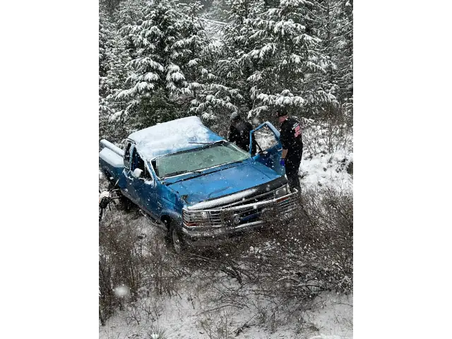 South Pend Oreille Fire Rescue responded to an injury accident on December 1 at MP 327 Rt 2. The picture shows SPOFR Team Members assisting the driver up a snowy bank to a waiting ambulance.
